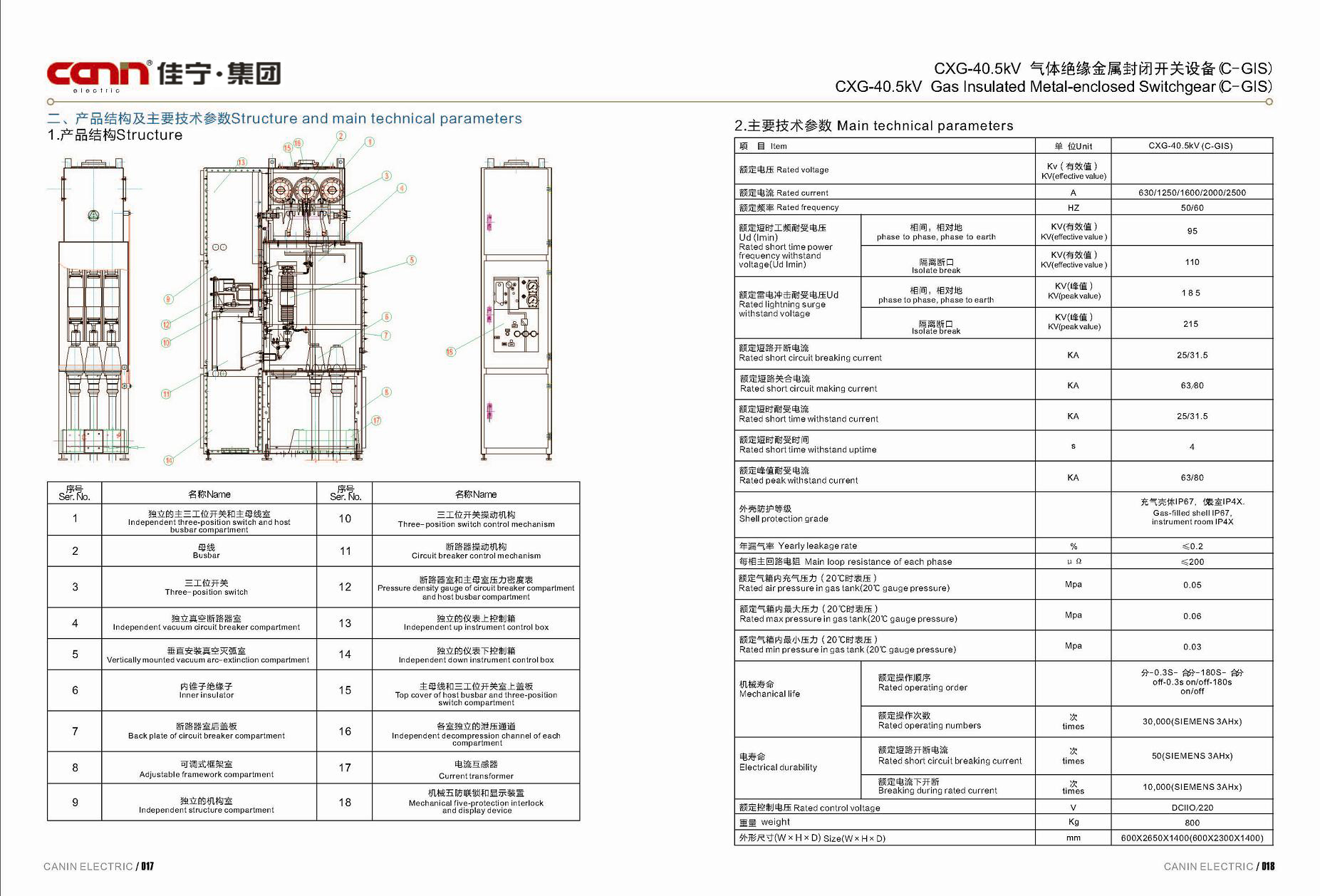 CXG-40.5kv气体绝缘金属封闭开关设备